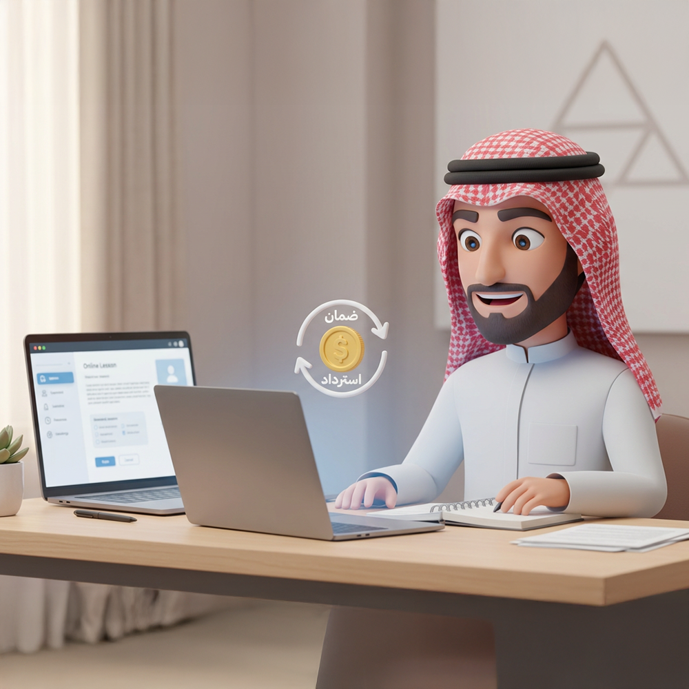 - 100% استرداد للأموال: بمجرد تقديمك للتدريب والتزامك بالخطة الدراسية وعدم تحقيق التحسن، سيكون لك الحق في استرداد كامل المبلغ.